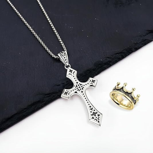 【Compra 1 y recibe 1 gratis】👑✝️ Collar vintage con cruz y corona – símbolo de fe, fuerza y protección diaria