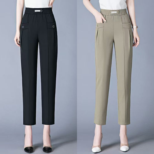🔥【45% off】Nuevos pantalones rectos de alta calidad, pantalones casuales de verano, pantalones de chaqueta, pantalones simples y ajustados de cintura alta