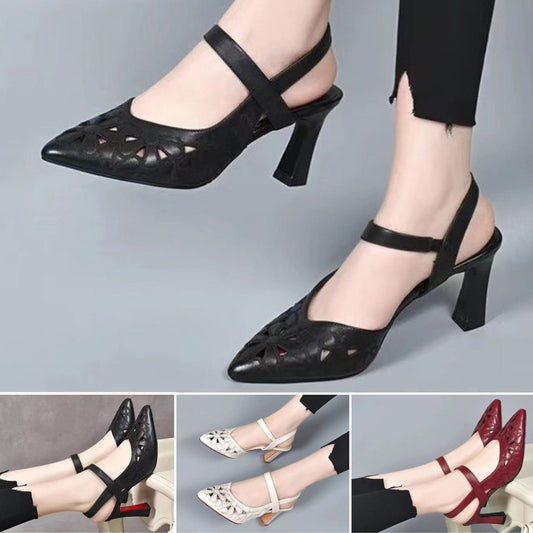 🔥【35-41】2025 nueva moda tacones altos huecos de cuero suave con punta puntiaguda