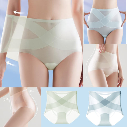 🔥【6 ks】Poslední den – sleva 50 % – nové bezešvé kalhotky z ledového hedvábí s vysokým pasem, tvarující břicho