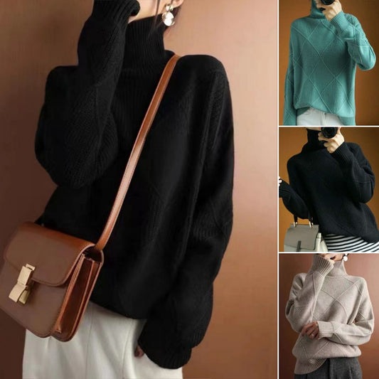 ✨ Γυναικείο φαρδύ κασμιρένιο πουλόβερ με ψηλό γιακά – απαλό, κομψό και άνετο στη χρήση