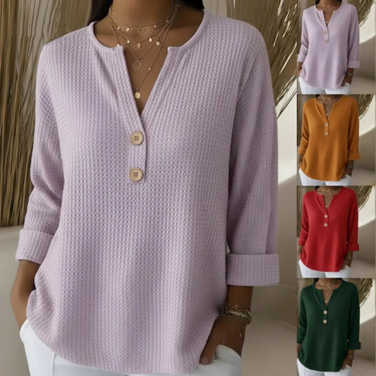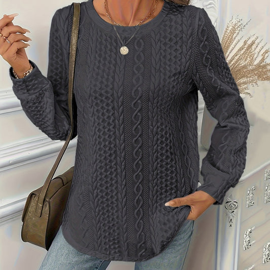 ✨【L-6XL】Μονόχρωμο γυναικείο φούτερ με υφή, φαρδύ με στρογγυλή λαιμόκοψη