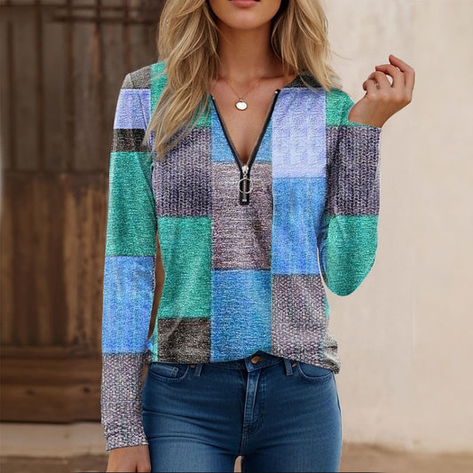 🔥【S-5XL】Damska koszulka z nadrukiem i zamkiem błyskawicznym przy dekolcie