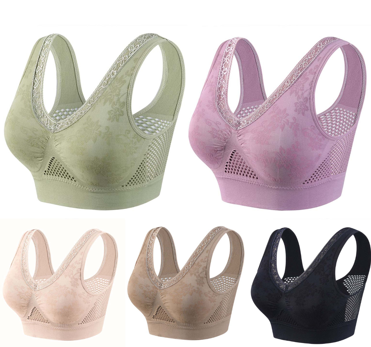 😍❤️ 40-120 kg 【5-częściowy komplet】✨Biustonosz bez fiszbin, oddychający, w dużym rozmiarze dla kobiet