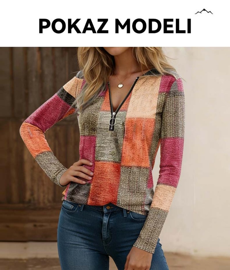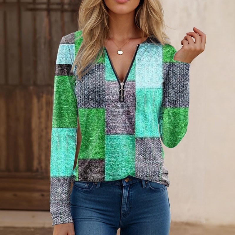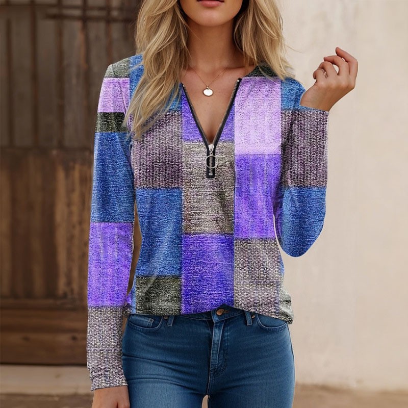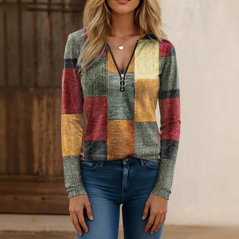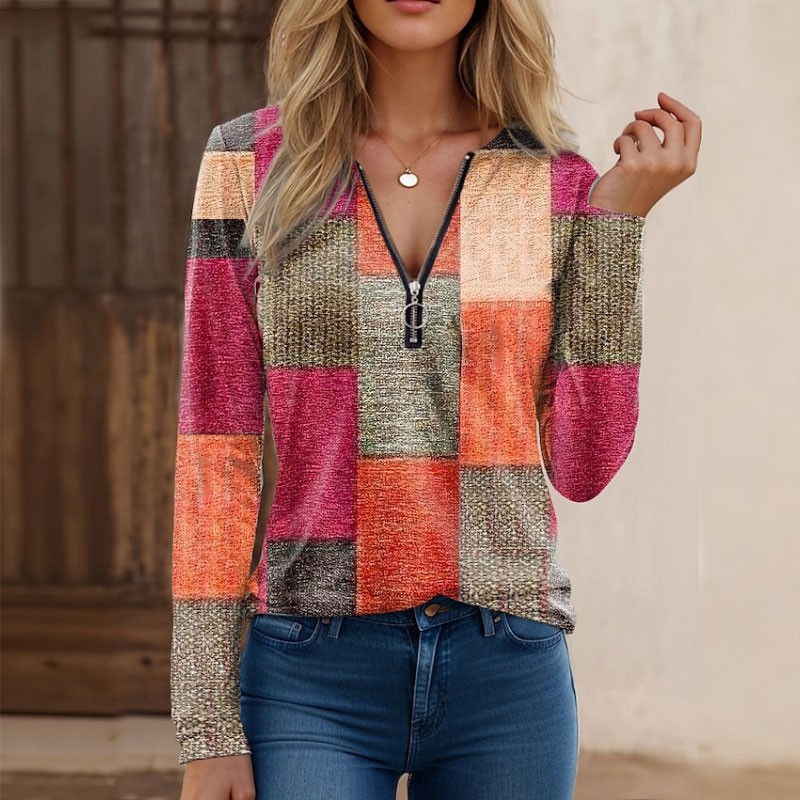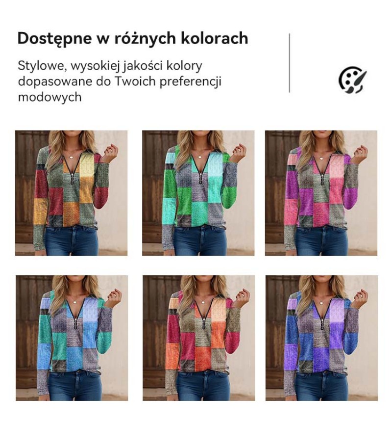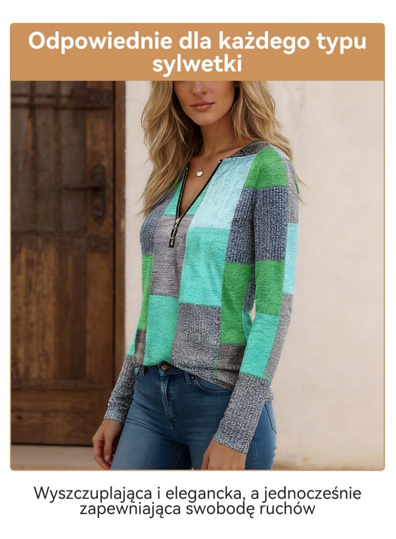 【S-5XL】Nowa modna, luźna, luźna koszulka z nadrukiem, dekoltem w serek, długim rękawem i blokami kolorów