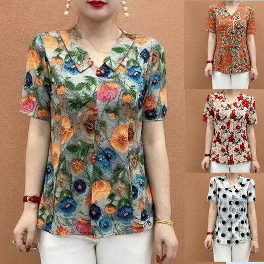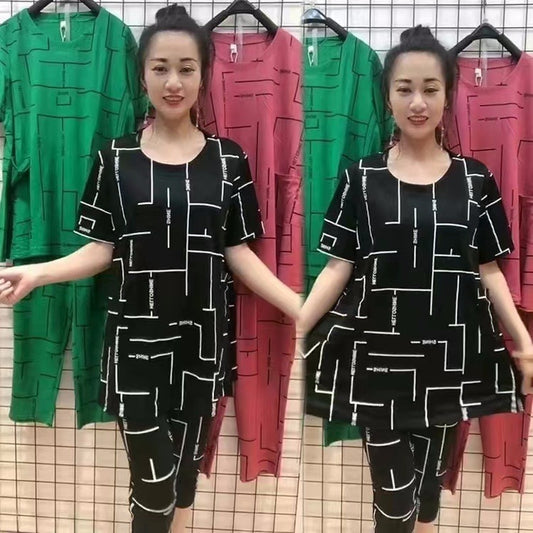【Top + Pantaloni】🔥Costum de femeie cu mânecă scurtă, stil nou 2025, lejer, pentru femei de vârstă mijlocie și în vârstă