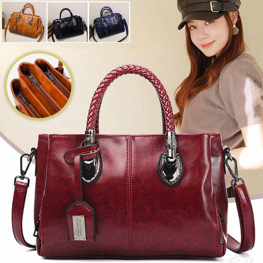 👜 Geantă retro din piele de vacă Boston pentru femei, geantă din piele moale, poate fi purtată cu un singur umăr