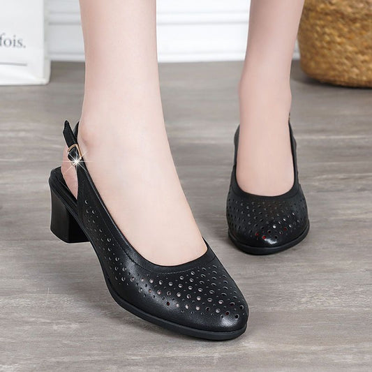 👡【35-41】 Sandale noi din piele moale și cu toc gros gol din 2025
