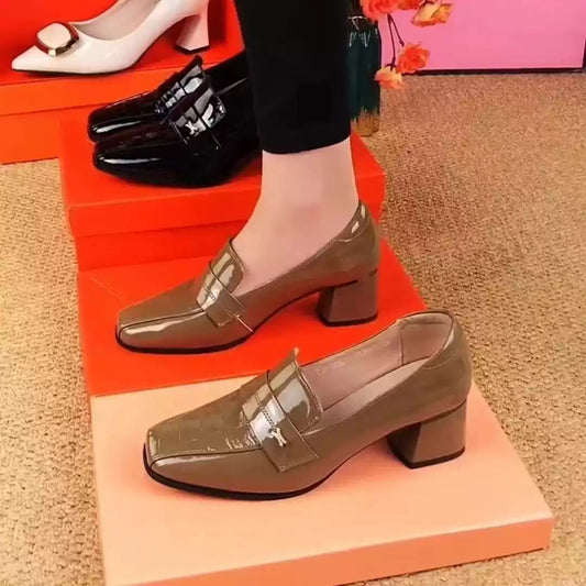 🔥【35-40】2025 pantofi noi la modă din piele lăcuită cu toc mijlociu