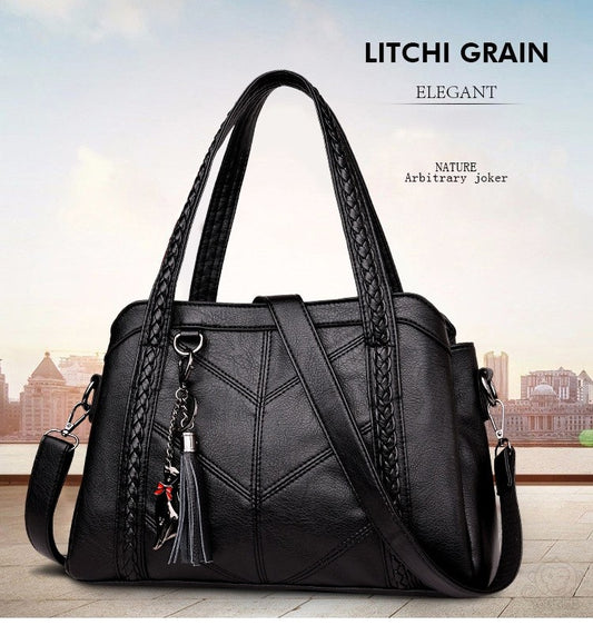 Geantă de piele de bou, geantă de mână, capacitate mare cu trei spații, pilele moale.