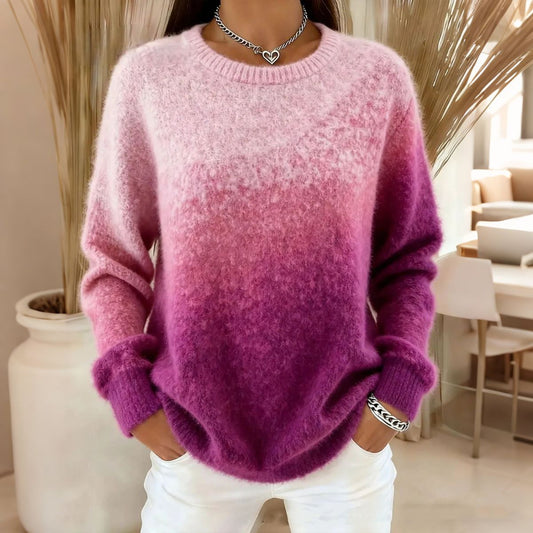 🔥【S–5XL】Sveter s okrúhlym výstrihom a gradientnou farbou, teplý a pohodlný.