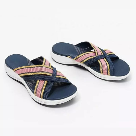 【36-41】Lehké ploché sandály s křížovým páskem pro ženy – letní neformální boty s vykrojeným designem