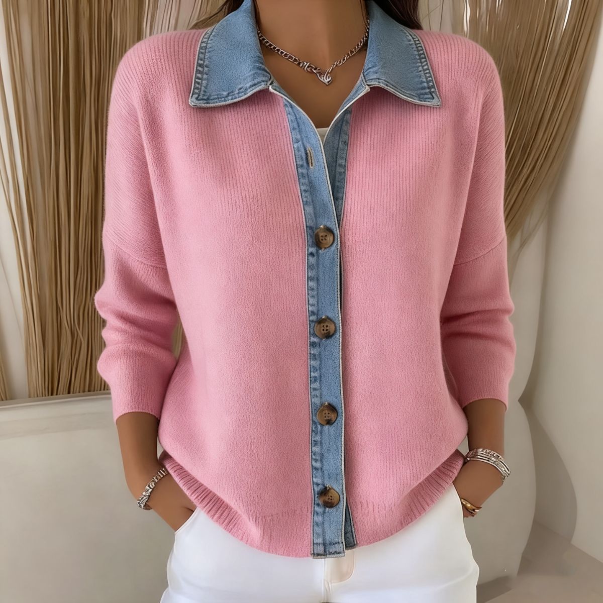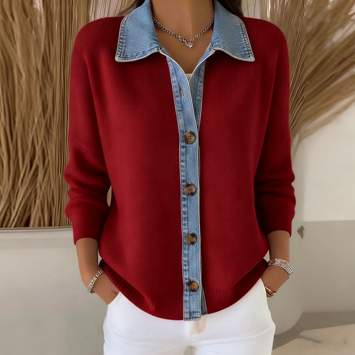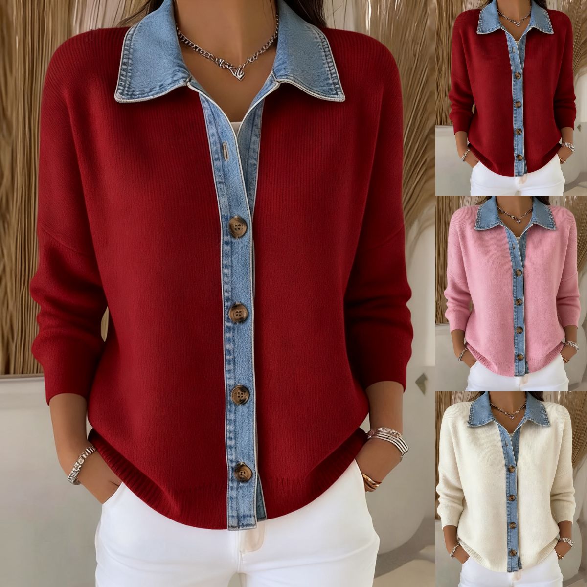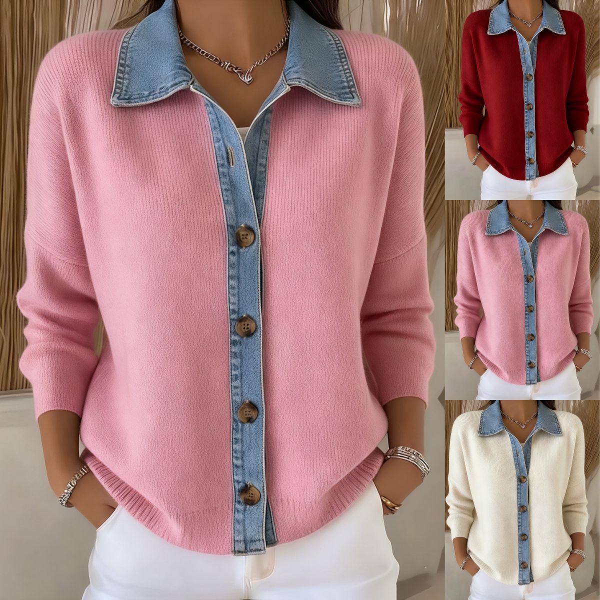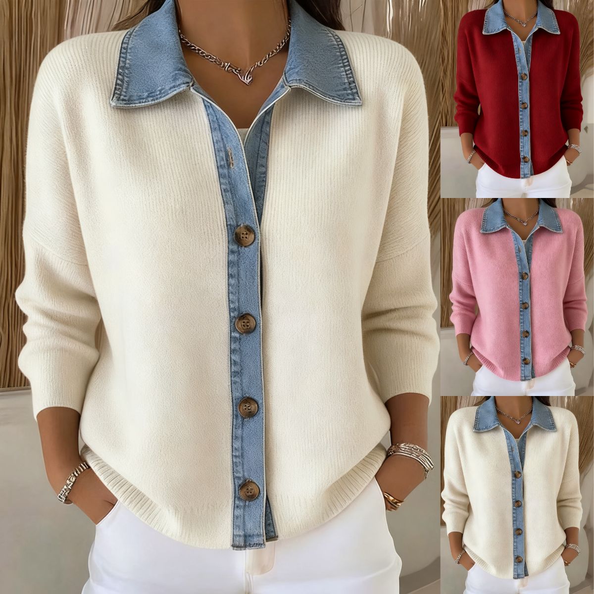 🔥【S-3XL】Nový dámsky džínsový patchworkový kardigan